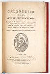 [RÉPUBLIQUE FRANÇAISE] - Calendrier de la République française [.] - Commune-Affranchie, de l'Imprimerie Républicaine des représentans du Peuple, l'an second [1793] - 1 volume In-8° - 24 pages, [15] feuillets et 2 tableaux dépliants in fine -