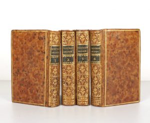 Reliure de l'époque veau havane moucheté - Plats encadrés d'1 triple filet doré - Roulette aux coupes et aux contre plats - Dos lisses ornés (petits accidents à 2 coiffes) - Pièces de titre et de tomaison maroquin vert - Tranches dorées -
