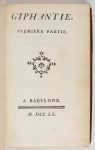 [TIPHAIGNE DE LA ROCHE (Charles-François)] - Giphantie - À Babylone, 1760 - 2 volumes In-12° - [4], 176 et [4], 174 pages - Petit billet manuscrit relié avec le texte entre les pages 160 et 161 et annotations manuscrites à la suite du texte page...
