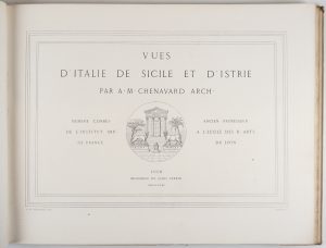[ARCHITECTURE] - CHENAVARD (A. M.) - Vues d'Italie, de Sicile et d'Istries - Lyon ; Imprimerie de Louis Perrin, 1861 - 1 volume grand In-4° oblong monté sur onglets - 1 portrait de l'auteur d'après Jean-Auguste-Dominique Ingres et 14 gravées...