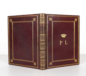 Belle reliure de l'époque maroquin chocolat - Plats encadrés d'1 triple filet doré - Encadrement central d'1 triple filet fleuronné aux angles aux plats avec chiffres PL surmonté d'1 couronne dorée au 1er plat - Double filet aux coupes - Large dentelle intérieure dorée - Dos à nerfs titré or et richement orné avec petits cercles maroquin noir mosaïqués aux caissons - Tranches dorées -