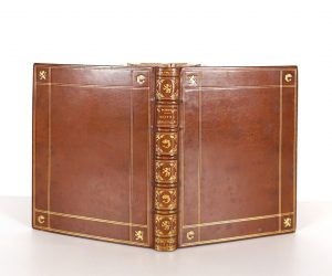 Reliure début XXème siècle veau havane signée L. Guétant - Plats encadrés de 2 doubles filets dorés avec lions et animal aquatique dorés aux angles - Dos à nerfs richement orné, titré et daté or à l'identique - Couvertures conservées - Tête dorée -