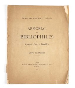 [LYON - BIBLIOPHILE] - Armorial des bibliophiles du Lyonnais, Forez et Beaujolais. Liste sommaire - Lyon ; Imprimerie Mougin-Rusand, Walterner et Cie, 1901 - 1 volume In-4° broché (petites déchirures avec perte au 1er plat, mors partiellement...