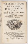 [LYON] - [CLAPASSON (André)] - Description de la ville de Lyon ; avec des recherches sur les hommes célèbres qu'elle a produits - Lyon ; Aimé Delaroche, 1741 - 1 volume petit In-8° -