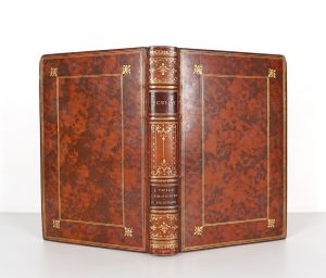 Reliure de l'époque veau havane marbré signée L. Guétant - Plats encadrés d'1 triple filet doré et d'1 second encadrement composé d'1 double filet avec fleurons angulaires dorés au centre des plats - Couvertures conservées - Dos à nerfs richement orné - Pièces de titre maroquin brun - Tête dorée -