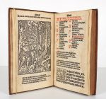 Frontispice et 56 gravures sur bois à tiers de page, vignettes et lettrines - Écriture en caractères gothiques à l'encre rouge et noire -