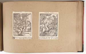 gravures bibliques (très certainement celles de l'ouvrage mentionné), 1 page de texte et 2 pages de lettrines découpées in fine réparties sur 43 pages -