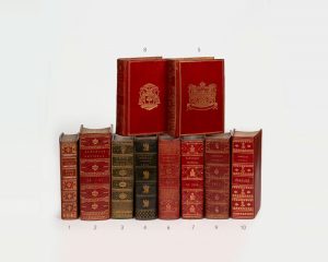 volume in 8, reliure de l'époque en maroquin vert, dentelle dorée d'encadrement, monogramme doré au centre dans un écusson doré entouré de feuille de laurier.