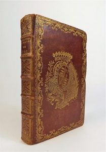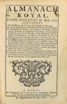 ALMANACH ROYAL, année bissextile 1752. Paris, Le Breton, imprimeur ordinaire du Roy, 1752. In-8 maroquin rouge, large encadrement doré sur les plats, armes au centre, dos à nerfs orné, gardes de tissu bleu clair, tranches dorées (reliure de l'époque). Exemplaire aux Armes de Guyot de Chenisot, famille nivernaise. Coins émoussés.