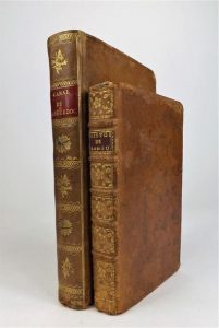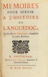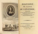 BASVILLE (Nicolas de Lamoignon de). MEMOIRES POUR SERVIR A L'HISTOIRE DE LANGUEDOC. Amsterdam, Pierre Boyer, 1734. In-12, basane marbrée, dos à nerfs orné (reliure de l'époque). Edition originale. On joint : RIQUET DE BONREPOS (descendants de Pierre-Paul). Histoire du canal de Languedoc. Paris, Deterville, an XIII - 1805. In-8, basane fauve, dos lisse orné (rel. de l'ép.). Édition originale, illustrée d'un portrait-frontispice gravé par Delvaux. Carte manquante. Ensemble 2 volumes.