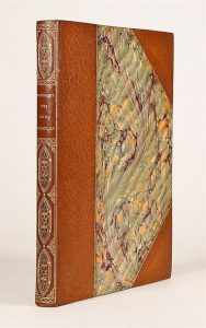 BOULANGER (Madame P.). ALPHABET DES BONS EXEMPLES. Dessins de H. Gray. Paris, Lévy (1885). In-8 carré, demi maroquin caramel à coins, dos mosaïqué et orné de petits fers dorés, t. dorée, couv. (Champs). Ravissant abécédaire illustré par HENRY GRAY, pseudonyme d'Henri Boulanger. Entièrement monté sur onglet, c'est l'un des 25 EXEMPLAIRES NUMEROTES SUR JAPON mis dans le commerce ; il est illustré de 28 planches en couleurs, avec une suite en noir. Ses belles couvertures vertes toilées illustrées ont été conservées. Très fine reliure ornée de Champs.