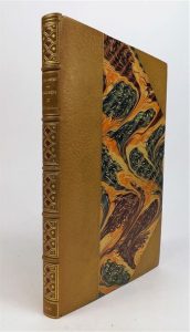 CERVANTES (Miguel de). RINCONETE ET CORTADILLO. Paris, Librairie Artistique, 1891. In-4°, demi-maroquin citron à coins, dos à nerfs orné de pièces de maroquin rouge mosaïquées, tête dorée, couvertures et dos (Carayon). Luxueuse édition illustrée de 67 fines compositions in et hors-texte par H. ATALAYA, gravées sur bois par J. Huyot. Tirage à 575 exemplaires, celui-ci L'UN DES 50 NUMEROTES SUR CHINE, contenant une suite de tous les bois tirés à part. Catalogue de l'éditeur relié in fine. Bel état.