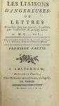 CHODERLOS DE LACLOS. LES LIAISONS DANGEREUSES. Amsterdam et Paris, Durand, 1782. 4 parties de 171 ; 161 ; 155 ; 176-[2] pages en 2 volumes in-12, demi veau sable à coins, dos lisse très joliment orné, tr. rouges (reliure du XIX°). Edition à la même date que l'originale, du tirage F. Bon exemplaire.