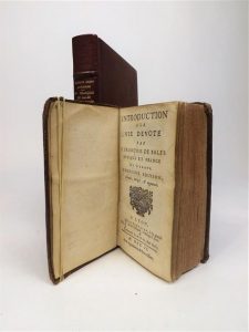 FRANCOIS DE SALES (Saint). INTRODUCTION A LA VIE DEVOTE. Dernière édition, revue et corrigée. Lyon, Coutavoz et Laurens, 1702. In-12 de [16]-499-[11] pages, basane brune, dos à nerfs orné (reliure de l'époque). Exemplaire modeste, il a appartenu à Du Plessis d'Argentré (ex libris manuscrit). On joint : HENRY-COUANNIER. Saint François de Sales et ses amitiés. Paris, Per Orbem, 1925. In-8, maroquin rouge, couv. (Bel ex).