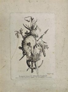 HUET (J.B.). PREMIER LIVRE DE DIFFERENTS TROPHEES - DEUXIEME LIVRE DE DIFFERENTS TROPHEES. Paris, chez Demarteau (1772). 2 suites de 4 gravures chacune, demi toile verte (reliure du XIX°). Elégants trophées de chasse gravés en noir. L'ensemble est monté sur onglet.