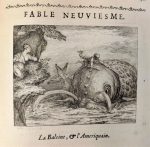 LA MOTTE (Houdard de). FABLES NOUVELLES, DEDIEES AU ROY. Paris, Dupuis, 1719. In-4°, demi-velin bradel ivoire, dos lisse, tranches rouges (reliure postérieure). Très belle édition imprimée sur grand papier ; elle est illustrée d'un titre allégorique par Coypel gravé par Tardieu, d'une vignette de titre de Vleughels et de 100 jolies et spirituelles vignettes, la plupart d'après Gillot, les autres par Coypel, Edelinck, Picart, Ranc. Quelques rousseurs. (Cohen, 326).