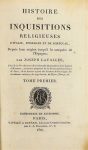 LAVALLEE (Joseph). HISTOIRE DES INQUISITIONS religieuses d'Italie, d'Espagne et de Portugale depuis leur origine. Paris, Capelle, 1809. 2 volumes in-8, basane mouchetée, dentelle dorée, dos lisse orné (reliure de l'époque). Seule édition, elle est ornée de 6 planches gravées sur acier : oriflammes, croix de supplice et sceau de l'inquisition, scènes de tortures, auto-dafé, etc... Bon exemplaire. (Caillet n°6223).