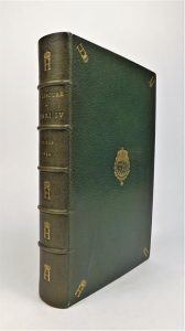 LESCURE (M. de). HENRI IV (1553-1610), dix gravures sur acier d'après les maîtres par Léopold Flameng. Paris, Ducrocq, 1874. Grand in-8, maroquin vert émeraude, plats ornés des armes de Henri IV avec son chiffre couronné aux angles, large dentelle intérieure dorée, dos à nerfs orné, t. dorée (Allo). L'un des 25 exemplaires sur Hollande, numéroté et signé par l'éditeur. Dos éclairci. Belle reliure d'Allo.