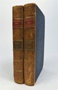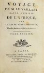 LEVAILLANT. VOYAGE DANS L'INTERIEUR DE L'AFRIQUE par le Cap de Bonne-Espérance dans les années 1780, 81, 82, 83, 84 et 85. Paris, Leroy, 1790. 2 volumes in-8 demi-basane, dos lisse, tranches rouges (reliure de l'époque). Frontispice (rogné court), une vue repliée du Cap de Bonne Espérance, une planche repliée du Camp de Pampon-Kraral et 8 jolies planches gravées. Rousseurs éparses, exemplaire modeste.