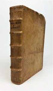 LIPSE (Juste). RECUEIL DE 7 OUVRAGES publiés entre 1598 et 1603, tous imprimés à Anvers, Ex officina Plantiniana. In-4°, velin de l'époque). Cet ensemble contient : 1. ADMIRANDA, sive, De magnitudine romana libri quatuor. Secunda edition, 1599. 209-[7] pages. 2. DE AMPHITHEATRO liber. Cum aeneis figuris. Omnia Auctoria vel meliora. 1598. 77-[7] pages. 6 gravures à pleine page dont une double, et une dans le texte. 3. SATURNALIUM sermonum libri duo. Qui de Gladiatoribus. edition ultima. 1598. 130-[6] pages. 4. DE CRUCE libri tres. Edition quarta. 1599. 95-[8] pages. 18 gravures sur cuivre dont 2 à pleine page et un bois dans le texte. 5. DE VESTA ET VESTALIBUS syntagma. 1603. [8]-50-[6] pages. 6. VELLEIUS PATERCULUS CUM ANIMADVERSIONIBUS. 1600. 69-[11] pages. 7. VELLEIUS PATERCULUS ANIMADVERSIONES. 1600. 48-[4] pages. Rongeure sur un coin d'un plat, cernes clairs.