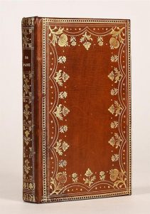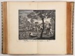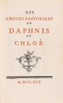 LONGUS. LES AMOURS PASTORALES DE DAPHNIS ET CHLOE. (Paris), sans nom, 1745. In-12 de [12]-159-[20] pages, maroquin fauve, plats richement ornés de guirlandes et motifs floraux dorés, dos lisse orné, tranches dorées (reliure début XX°) Charmante édition ornée d'un frontispice par Coypel, de 4 culs-de-lampe par Cochin et de 29 jolies figures, dont 13 à double page et montées sur onglet, gravées par Benoit Audran d'après des compositions dessinées en 1714 par le Régent Philippe d'Orléans. Très bon exemplaire. (Cohen, p.357).