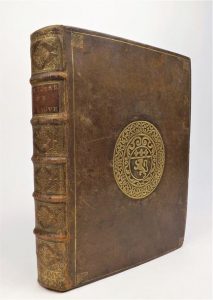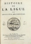 MAIMBOURG. HISTOIRE DE LA LIGUE. Paris, Mabre-Cramoisy, 1683. In-4°, basane brune, plats ornés des armes de Lyon avec de petits fleurons d'angle, dos à nerfs orné (reliure de l'époque). Edition originale dédiée à Louis XIV. Joli exemplaire aux armes dorées de la ville de Lyon, mais relié sans le frontispice.