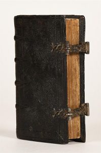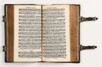 MAROT (Clément - BEZE (Th. de). LES CL PSEAUMES (sic) de David mis en ryme Françoise. Leyden, Paul de Ravesteyn, 1646. In-16, galuchat noir, fermoirs ciselés, tranches vernies (reliure de l'époque). Impression musicale des psaumes de David dans la version de Clément Marot et de Théodore de Bèze, suivis de La forme des prières ecclésiastiques, La forme d'administrer le baptême, La manière de célébrer La Sainte Cene et le mariage, du Catéchisme et de la Confession de foi. Bel exemplaire.