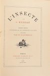 MICHELET (Jules). L'INSECTE. Nouvelle édition illustrée de 140 vignettes sur bois. Paris, Hachette, 1876. Grand in-8, demi-maroquin bleu à coins, dos à nerfs orné de fers dorés représentant des abeilles, t. dorée, couv. et dos (P. Affolter). Première édition illustrée de 140 vignettes par H. Giacomelli. Bel exemplaire joliment orné de fers spéciaux. (Vicaire V, 834).