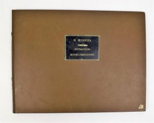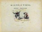 MONNIER (Henri). DISTRACTIONS. Paris, Henry Monnier, Février 1832. In-4° oblong, bradel percaline grise, pièce de maroquin avec le titre sur le 1er plat (reliure psotérieure). Série complète qui comprend 6 planches et un frontispice, l'ensemble en couleurs d'après Cruikshank. A la suite du même artiste, une suite de 10 planches, également en couleurs intitulées « Mours parisiennes », suivies d'une planche extraite du journal « La caricature ». L'ensemble est monté sur onglet. Quelques rousseurs.