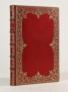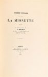 MULLER (Eugène). LA MIONETTE. Paris, L. Conquet, 1885. Petit in-8, maroquin framboise, large décor doré entourant les plats, dos à nerfs très orné, dentelle intérieure dorée, tranches dorées, couv. et dos (Chambolle-Duru). Edition originale ornée de 28 compositions finement gravées sur métal d'Oreste Cortazzo, peintre et graveur italien, élève de Léon Bonnat. Très bel exemplaire, L'UN DES 150 NUMEROTES A LA MAIN SUR JAPON, avec les initiales de l'éditeur. (Vicaire V, 1177).