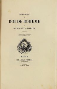 [NODIER (Charles)]. HISTOIRE DU ROI DE BOHEME ET DE SES SEPT CHATEAUX. Paris, Delangle, 1830. In-8, demi maroquin orange à coins, dos lisse orné de fers dorés rocailles (Bretault). Edition originale ornée de 50 vignettes de Tony Johannot gravées sur bois par Porret. C'est l'un des livres romantiques les plus réussis ! indique Clouzot, ce dernier soulignant que la quasi-totalité des exemplaires est fortement roussie. Notre exemplaire est exempt de rousseurs et imprimé sur un papier velin, il est non rogné et à grandes marges. Petit manque de cuir sur un plat. (Escoffier, Mouvement Romantique n° 839) (Clouzot 226).