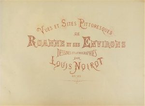 NOIROT (Louis). VUES ET SITES PITTORESQUES DE ROANNE ET DE SES ENVIRONS. Roanne, chez l'auteur, 1870-71. In-4° oblong (41 x 29 cms), demi chagrin brun, dos orné (reliure de l'éditeur) Album publié à compte d'auteur et constitué de 43 planches toutes légendées, dessinées et lithographiées par Louis Noirot. Bon exemplaire.