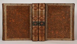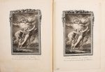 OVIDE. LES METAMORPHOSES. Paris, Delalain, 1767-1770. 4 volumes in-4°, basane mouchetée, plats ornés d'un encadrement de dentelle et de frise doré, dos lisse orné, tranches dorées (reliure postérieure). L'un des livres les plus élégamment illustrés de tout le siècle. « Ce superbe ouvrage est dû aux soins de l'éditeur Basan et du graveur Le Mire » (Cohen, p. 434/35). Cette édition traduite par l'abbé Banier est richement illustrée d'un frontispice, 140 figures hors texte, 30 vignettes dans le texte, fleurons pour les titres et un beau cul-de-lampe, le tout d'après Boucher, Eisen, Gravelot, Leprince, Monnet, Moreau, Parizeau et Saint-Gois. EXEMPLAIRE D'EXCEPTION qui offre la particularité d'avoir été relié AVEC TOUTES LES ILLUSTRATIONS EN 2 ETATS et quoique le 4éme volume soit à la date de 1770, les épreuves sont excellentes. Très bon exemplaire.