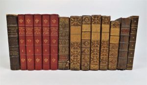 PERDEREAU (B). LES MARTYRS DE PICPUS. P., Josse, 1871. Relié à la suite : PONLEVOY. ACTES DE LA CAPTIVITE et de la mort des pp. de la compagnie de Jésus. P., Téqui, 1871. 1 volume in-12, demi chagrin brun (reliure de l'époque). On joint : CRETINEAU-JOLY. Histoire de la Compagnie de jésus. Lyon, 1851. 5 volumes in-12, demi chagrin rouge - PETITPIED. Recueil de pièces touchant l'histoire de la Compagnie de jésus. Liège, 1716. In-12, basane de l'époque. RECUEIL d'environ 30 pièces sur la constitution de la bulle Unigenitus et les jésuites. 1715-60, reliées en 6 vol. in-12, basane époque - JUGEMENT porté sur les jésuites. Lisbonne, 1761. In-12, demi veau XIX° - Ensemble de 14 volumes.
