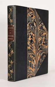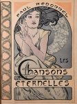 REDONNEL (Paul). LES CHANSONS ETERNELLES. Nouvelle édition illustrée. Paris, Bibliothèque artistique et littéraire [La Plume], 1898. 1 volume in-4°, demi maroquin bleu à coins, dos lisse orné d'une guirlande de fleurs mosaïquées, t. dorée, couv. et dos (reliure de l'époque). Édition illustrée d'une couverture en couleurs par Alfonse Mucha et de 44 hors-texte dont 3 pointes-sèches par Armand Rassenfosse, Henri Boutet de Montvel et Émile Noury, 2 eaux-fortes par Richard Ranft et Henri Héran, 5 lithographies par Berchmans, Causé (2) et P.-H. Lobel (2), etc etc... Tirage à 550 exemplaires, celui-ci numéroté sur vélin. Très bel exemplaire bien relié.