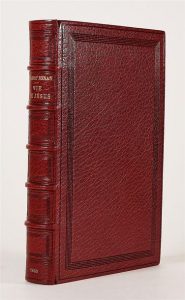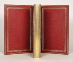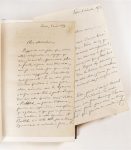 RENAN (Ernest). VIE DE JESUS. Paris, Michel Lévy frères, 1863. In-8, maroquin rouge foncé, encadrement de filets à froid sur les plats, doulure de maroquin de même teinte avec six filets dorés, gardes de moire rouge, double garde, dos à nerfs très orné, tranches dorées sur témoins, couv. et dos, étui bordé (Canape). Edition originale. « Ouvre d'art et de science, la Vie de Jésus a soulevé des tempêtes dans un pays où les études bibliques étaient en retard [...] L'imagination du poète-écrivain a fait de son livre une ouvre d'art qui survit aux critiques des historiens plus radicaux qui l'ont suivi » (En français dans le texte, 285). Très bel exemplaire enrichi de 2 LETTRES ET D'UNE REFLEXION AUTOGRAPHES SIGNEES DE L'AUTEUR et datées respectivement de 1869 et 1873. IMPECCABLE RELIURE DOUBLEE DE CANAPE.