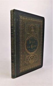 VERNE (Jules). AUTOUR DE LA LUNE. Paris, Hetzel, (1875). In-8, cartonnage vert aux initiales, tranches dorées (reliure de l'éditeur). 44 dessins par E. Bayard et A. De Neuville. Catalogue N°2. Reliure un peu frottée, coins émoussés.