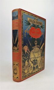 VERNE (Jules). LE TESTAMENT D'UN EXCENTRIQUE. Paris, Hetzel, (1899). In-8, cartonnage au globe doré, dos au phare, tranches dorées. 61 illustrations par G. Roux. Catalogue AV. Petits frottis à la reliure, dos passé, sinon bon exemplaire.