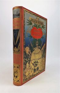 VERNE (Jules). BOURSES DE VOYAGE. Paris, Hetzel, sans date. In-8, cartonnage au globe doré, dos au phare, tranches dorées. 47 illustrations de L. Benett. Dos passé.