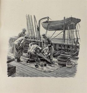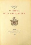ALBERT Ier. LA CARRIERE D'UN NAVIGATEUR. Paris, Hachette, 1914. In-4°, demi-velin bradel ivoire, titre calligraphié et dessin au dos, couvertures rempliées et dos conservés. Illustrée de 150 dessins en noir par LOUIS TINAYRE dont 2 cartes dépliantes en couleurs. Exemplaire enrichi d'une SUITE DES ILLUSTRATIONS SUR CHINE. Rousseurs.