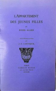 ALLARD (Roger). L'APPARTEMENT DES JEUNES FILLES. Paris, Camille Bloch, 1919. In-8, cartonnage bradel décoré, gardes de papier ornés de silhouettes féminines peintes, couvertures et dos, non rogné (Stroobants). Édition originale ornée de 10 fines compositions en noir à pleine page, dessinées et gravées au burin par JEAN-ÉMILE LABOUREUR. L'un des 6 exemplaires numérotés sur Vieux Japon avec une suite sur Chine, enrichi d'un DESSIN AU CRAYON signé et dédicacé par l'artiste à Lucien Graux. Ex-libris : Bibliothèque Lucien Graux - Claude Broquisse. Belle condition.