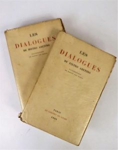 ARETIN (Pierre L'). LES DIALOGUES DE PIETRO ARETINO. Illustrations de Martin Van Maele. Paris, au Cabinet du livre, 1928. 2 volumes in-8, brochés. Eaux fortes de MARTIN VAN MAELE ET DE VISET. Exemplaire numéroté sur Hollande Pannekoek enrichi de nombreuses gravures en 2 états extraites des Ragionamenti, Piqures éparses.