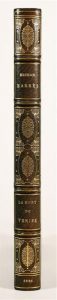 BARRES (Maurice). LA MORT DE VENISE. Illustré de 26 eaux fortes originales gravées par E. Chahine. Paris, Devambez, 1926. In-4°, demi maroquin vert empire à coins, dos à nerfs orné aux petits fers, t. dorée, couv. et dos (Bernasconi). Edition de grand luxe, tirée à 321 exemplaires et ornée de très belles compositions, hors texte pour la plupart. UN DES 50 EXEMPLAIRES NUMEROTES SUR JAPON IMPERIAL, contenant 2 états des eaux fortes, dont l'un avec remarque, et un important DESSIN ORIGINAL D'EDGARD CHAHINE. Belle condition.