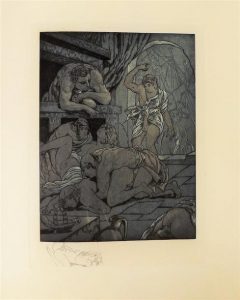 BLASCO IBANEZ (Vincente). [SONNICA LA COURTISANE. Paris, 1928]. In-4° en feuilles sous chemise et étui. Suite seule in-4° des 6 planches refusées, eaux-fortes très libres en 2 teintes par MAURICE DE BECQUE, complétant l'illustration de Sonnica la courtisane et réservées aux amis de l'artiste.