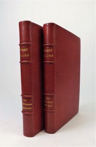 CHAINE (Pierre). LES MEMOIRES D'UN RAT. Préface d'Anatole France - LES COMMENTAIRES DE FERDINAND. Paris, Niestlé, 1920-21. 2 volumes in-8, maroquin carmin, larges encadrements intérieurs dorés, dos à nerfs, tranches dorées (Conil-Septier). Nombreuses et belles eaux-fortes originales par TIGRANE POLAT. Tirage limité avec la mention "cette édition, unique, ne sera pas réimprimée", le premier numéroté sur vergé Bouffant, le second numéroté sur grande fibre de Bambou et enrichi d'une suite de 6 eaux-fortes non utilisées. SUPERBE EXEMPLAIRE.