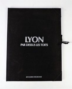 CHOURGNOZ (Jean-Marie). LYON PAR-DESSUS LES TOITS. Sans lieu, sans nom, 1982. In-folio en feuilles, sous chemise de l'éditeur. 27 planches en héliogravures. Ex. num. sur Job mat. Ensemble 2 volumes. Bonne condition.