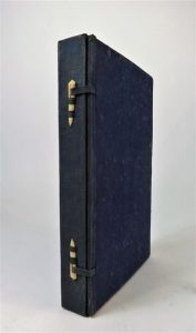 CLAUDEL (Paul). CONNAISSANCE DE L'EST. Pékin, Presses du Pei-T'ang, 1914. 2 volumes in-8, cousus à la chinoise, couverture de papier beige, étui de soie bleue avec attaches d'ivoire (reliure de l'éditeur). Belle et élégante édition publiée par Victor Segalen et dédiée « Aux lettrés d'extrême-Occident ». Elle est décorée d'ornements gravés sur bois : Caractères cursifs ou stylisés, filigranés de sceaux rouge-cinabre posés à la main. Tirage limité à 630 exemplaires. Celui-ci l'un des 30 NUMEROTES SUR VERGE NACRE. Exemplaire frais intérieurement, petites traces d'usure à l'étui.