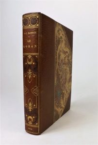 CORAN (Le). [MARDRUS (Joseph-Charles)]. Paris, Fasquelle, 1926. In-8, demi-maroquin cannelle à coins, dos lisse orné de motifs orientaux dorés et à froid, tête dorée, couvertures et dos (Yseux succ. de Thierry Simier). Edition originale de la traduction littérale et complète des Sourates Essentielles par Joseph-Charles Mardrus, médecin, poète et éminent orientaliste, acteur important dans la vie parisienne. TIRAGE LIMITE A 100 EXEMPLAIRES NUMEROTES SUR JAPON IMPERIAL celui-ci n°38. Parfait exemplaire entièrement non rogné.