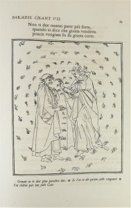 DANTE. LA DIVINE COMEDIE. Traduite par André Pératé. Paris, Jacques Beltrand, 1922-1923. 3 volumes grand in-4° en feuilles, chemises, sans étui. Édition publiée à l'occasion du sixième centenaire de la mort de Dante, illustrée d'environ 150 dessins dans le texte d'après BOTICELLI, gravés sur bois en camaïeu par GEORGES CAMILLE ET JACQUES BELTRAND. Texte italien placé au-dessus de la traduction française d'André Pératé. Tirage à 225 exemplaires numérotés sur vergé de Hollande.