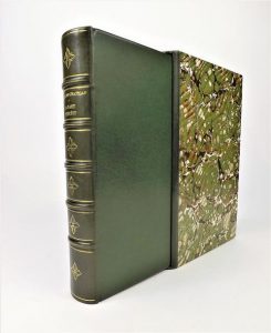 ERCKMANN-CHATRIAN. MADAME THERESE. Paris, Carteret, 1925. In-8, basane vert sapin, dos à nerfs orné de fleurons dorés, tête dorée, couvertures et dos, non rogné, étui bordé (Pitel). Illustré de 22 belles eaux-fortes originales rehaussées à l'aquarelle de JULIAN-DAMAZY, dont 18 hors-texte. Tirage limité à 400 exemplaires, celui-ci L'UN DES 100 DU TIRAGE DE TETE NUMEROTE SUR JAPON, enrichi d'une suite en noir des gravures avec remarques. Bel exemplaire.